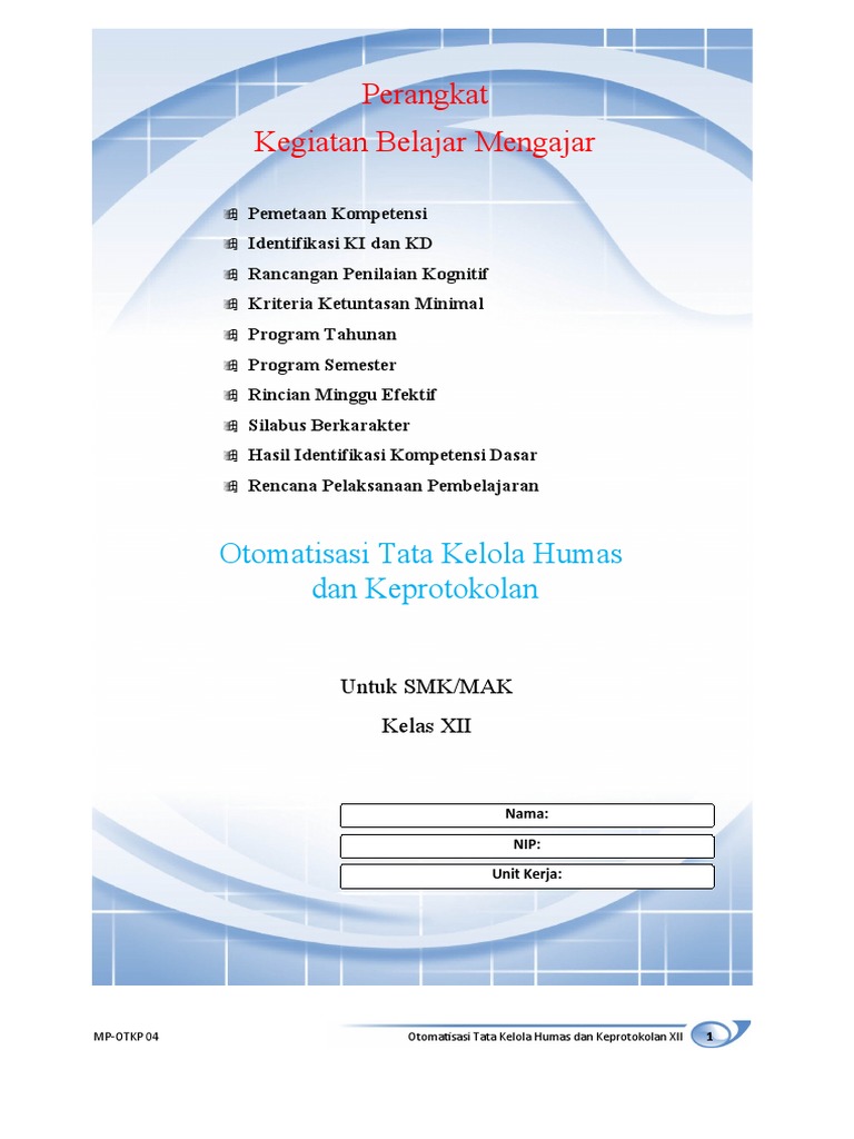 Silabus Otomatisasi Tata Kelola Humas Dan Keprotokolan Kelas Xii - Download Rpp Mata Pelajaran Otomatisasi Tata Kelola Kepegawaian Smk Kelas Xi Xii Jurusan Perkantoran Atau Otkp K13 Revisi 2017 2018 Rpp 1 Lembar Download Rpp Smk Kurikulum 2013 Revisi 2017 2018 2019 2020 2021 1 Lembar Daring - Silabus otomatisasi tata kelola humas dan keprotokolan kelas xii.. We did not find results for: Maybe you would like to learn more about one of these? Check spelling or type a new query. Silabus otomatisasi tata kelola humas dan keprotokolan kelas xii.