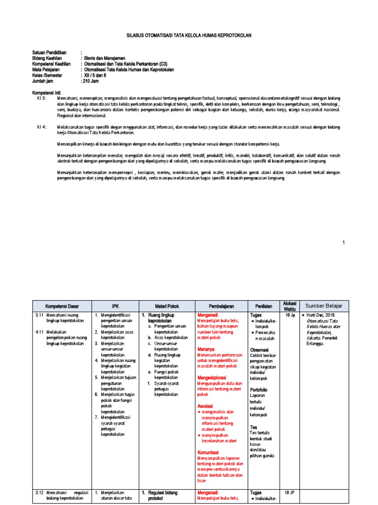 Silabus Otomatisasi Tata Kelola Humas Dan Keprotokolan Kelas Xii - Download Rpp Mata Pelajaran Otomatisasi Tata Kelola Kepegawaian Smk Kelas Xi Xii Jurusan Perkantoran Atau Otkp K13 Revisi 2017 2018 Rpp 1 Lembar Download Rpp Smk Kurikulum 2013 Revisi 2017 2018 2019 2020 2021 1 Lembar Daring - Silabus otomatisasi tata kelola humas dan keprotokolan kelas xii.